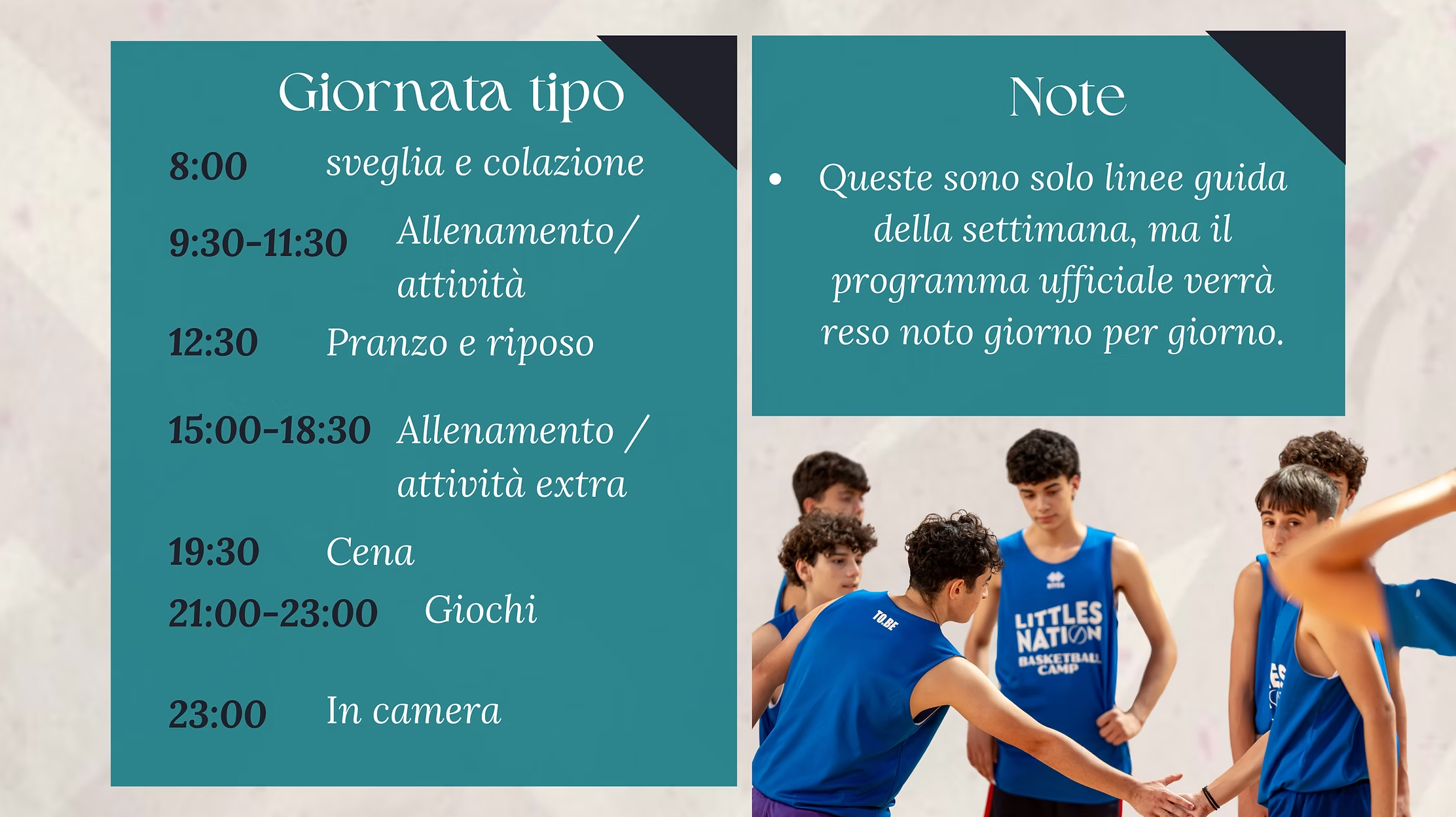 - Durante il camp verranno organizzate sfide con premi
